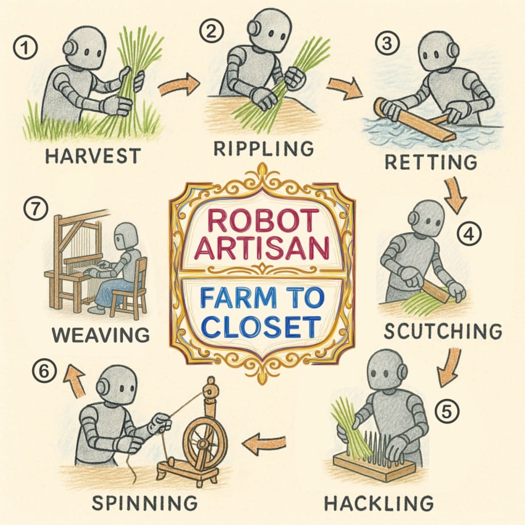 Tailors may find a farm-to-closet approach most lucrative, growing their own cotton, flax, hemp, or even silk, with their robot crew putting in the labor intensive effort to turn these raw fibres into fabrics. As has been the norm for most of humanity’s existence, people will once again clothe themselves in local fibres.